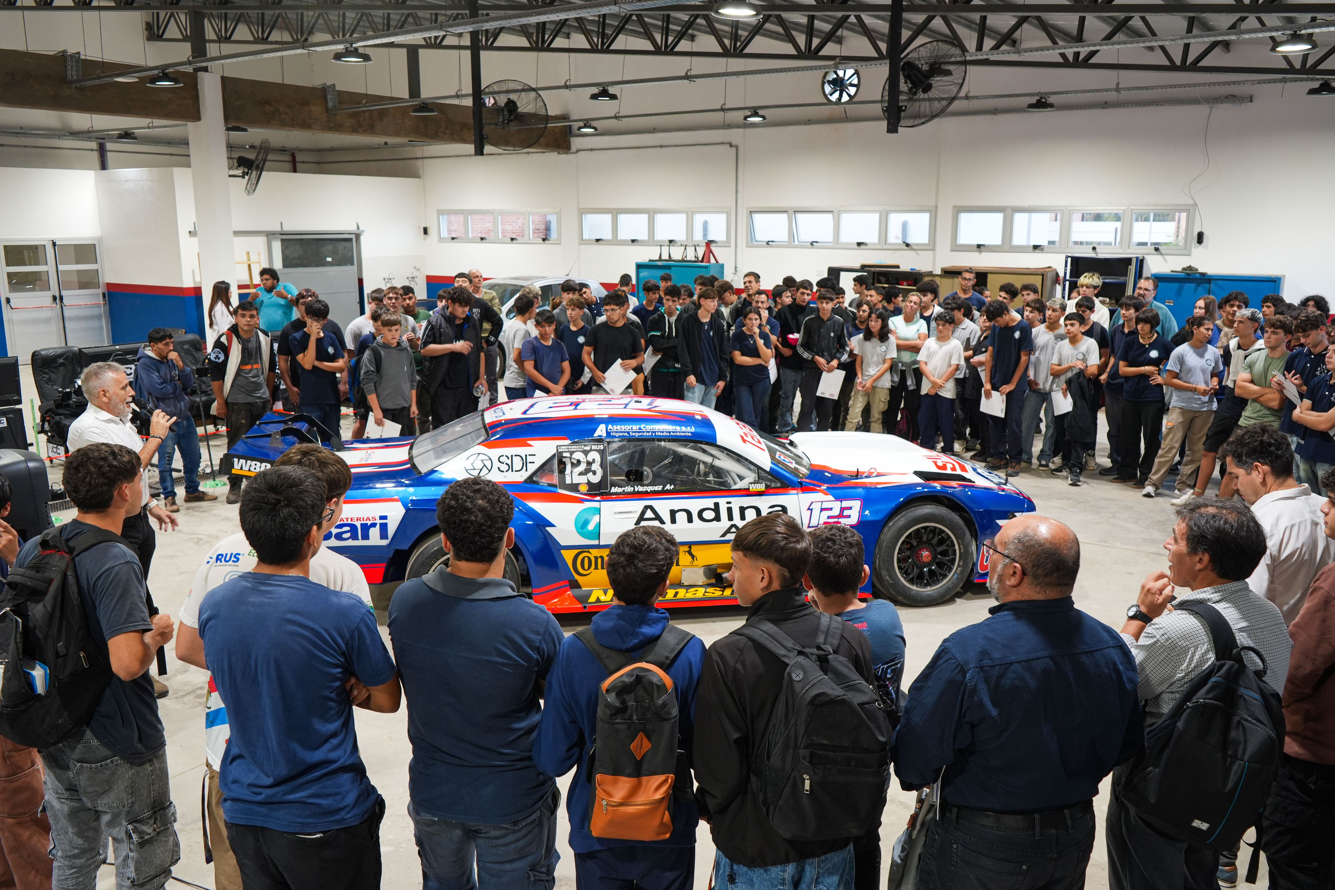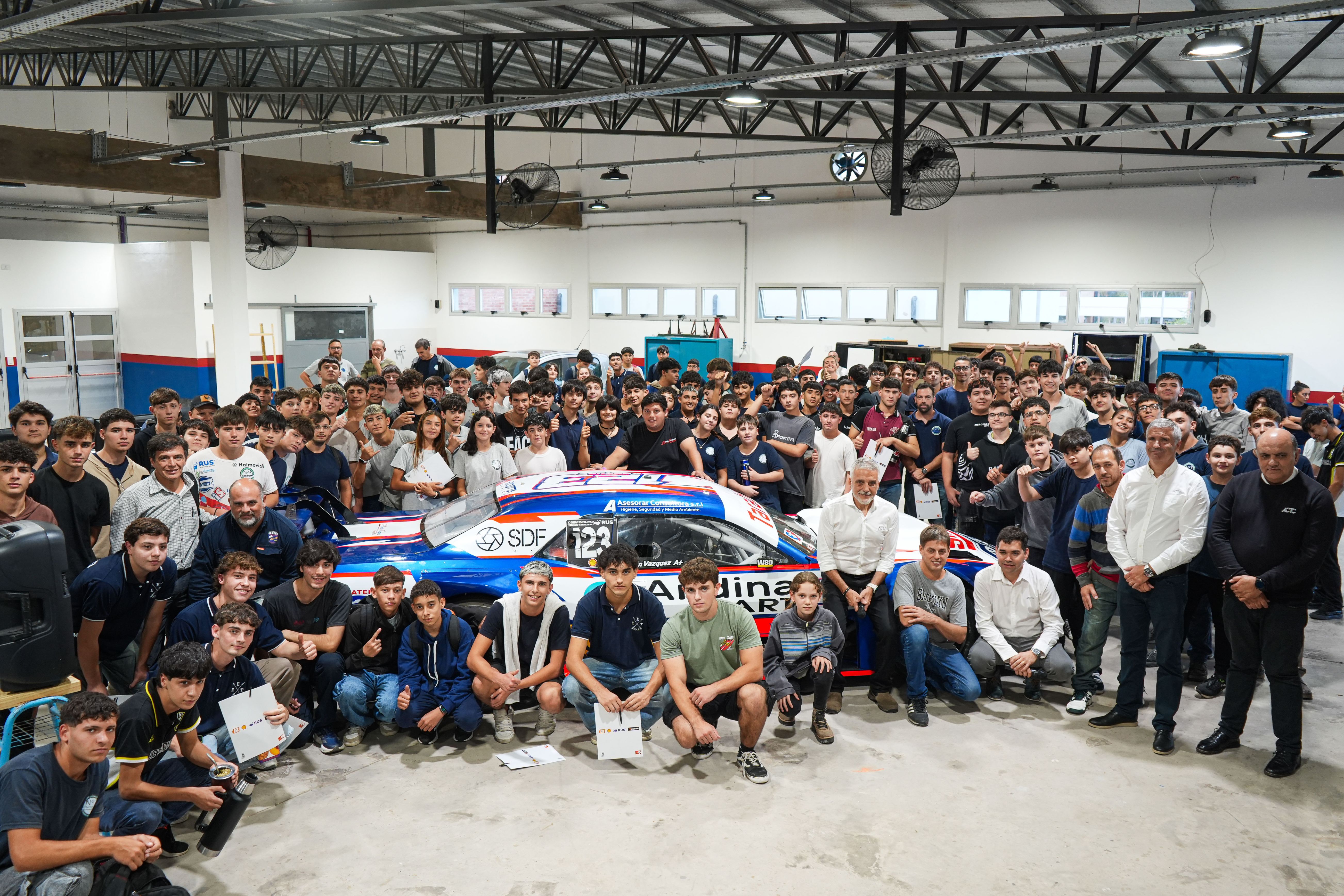 Sobre el final de la jornada, los alumnos pudieron apreciar, en cercanía, cómo es un auto de competición y para qué sirve cada elemento, tanto los que están a simple vista, como los que no son visibles. El Dodge Challenger de Martín Vázquez estuvo a disposición, en la entrada de la escuela, donde los docentes fueron demostrando, a los estudiantes, las utilidades que tienen ciertos elementos de un TC, como el splitter delantero, el alerón, entre otros componentes.