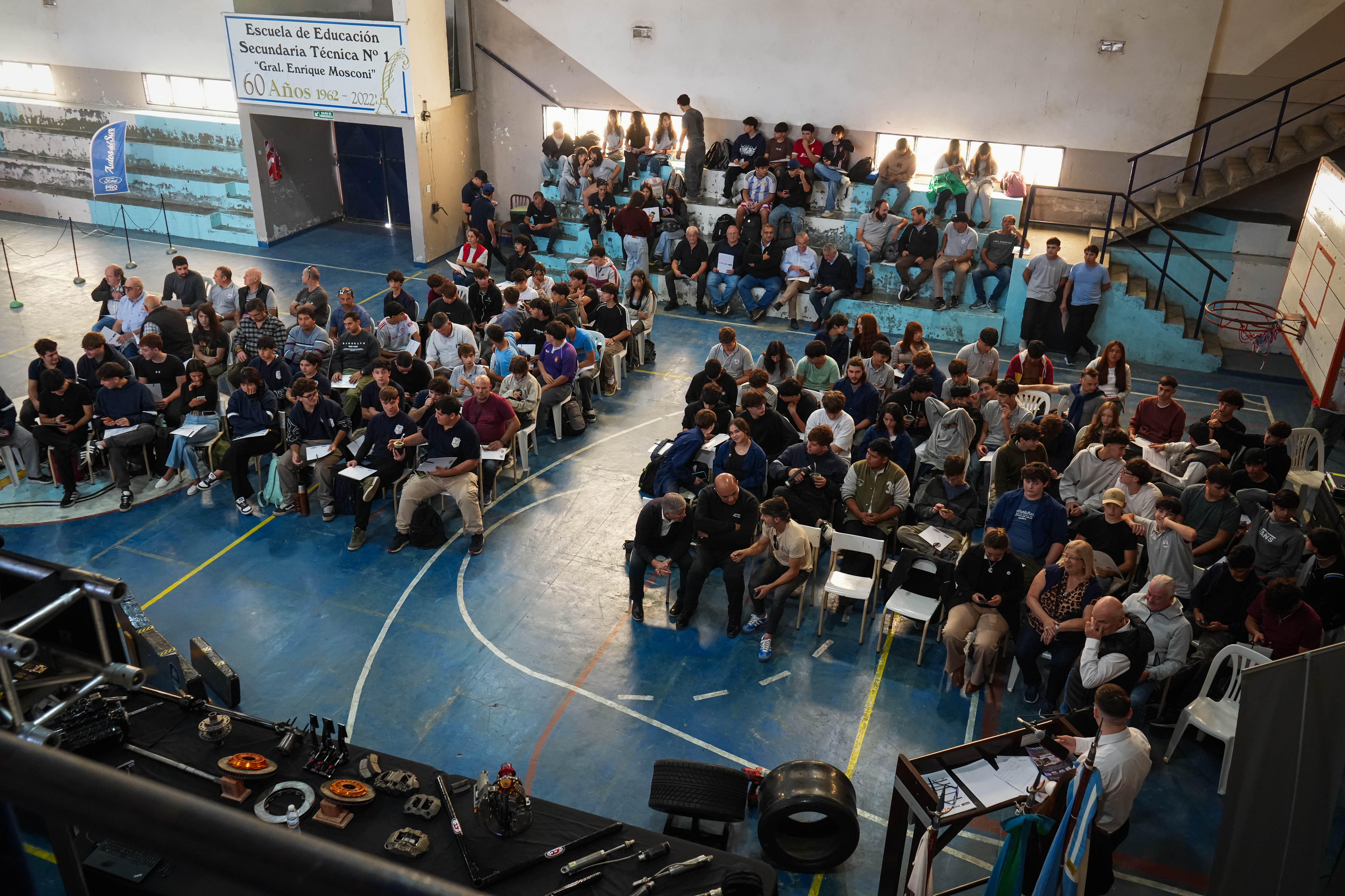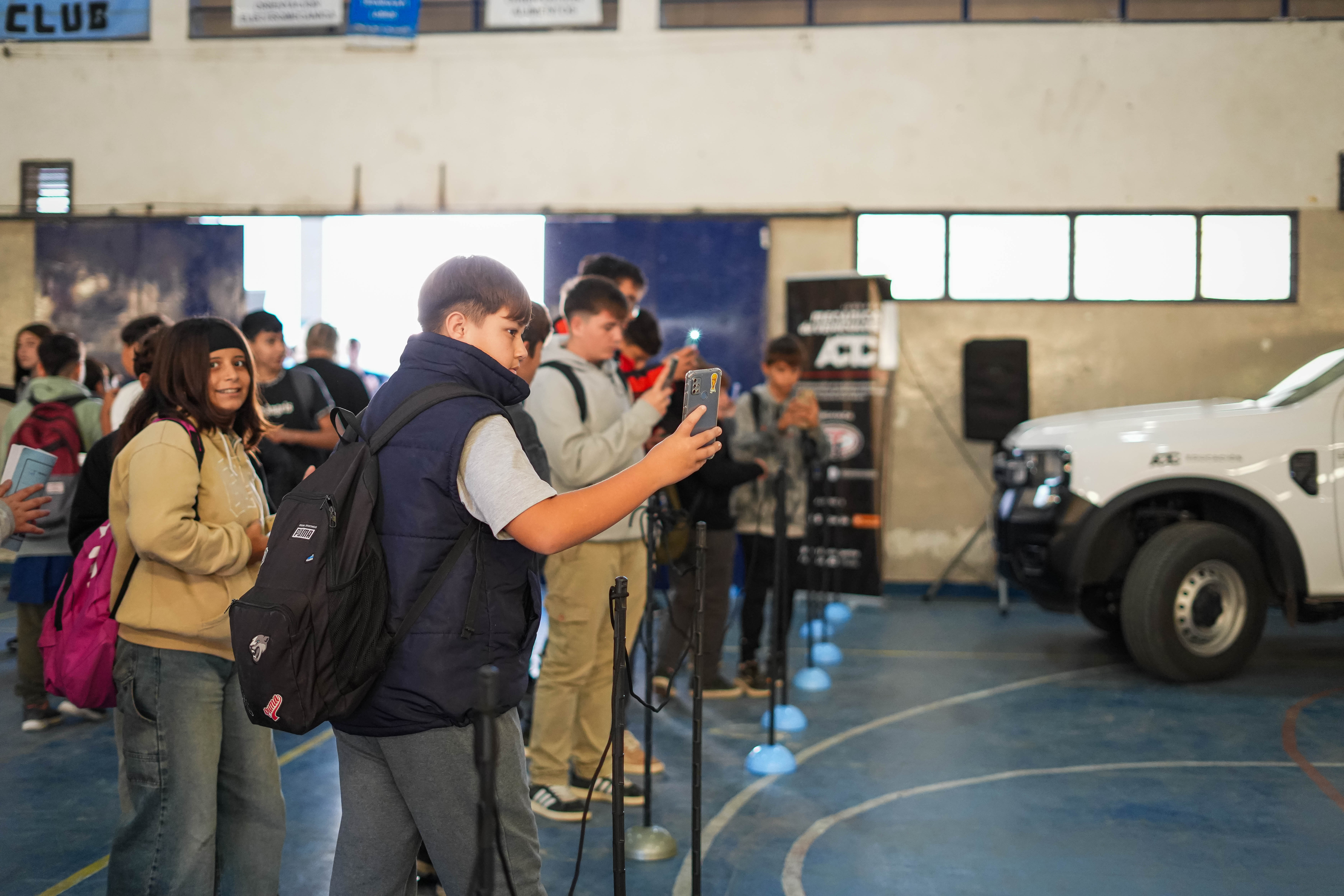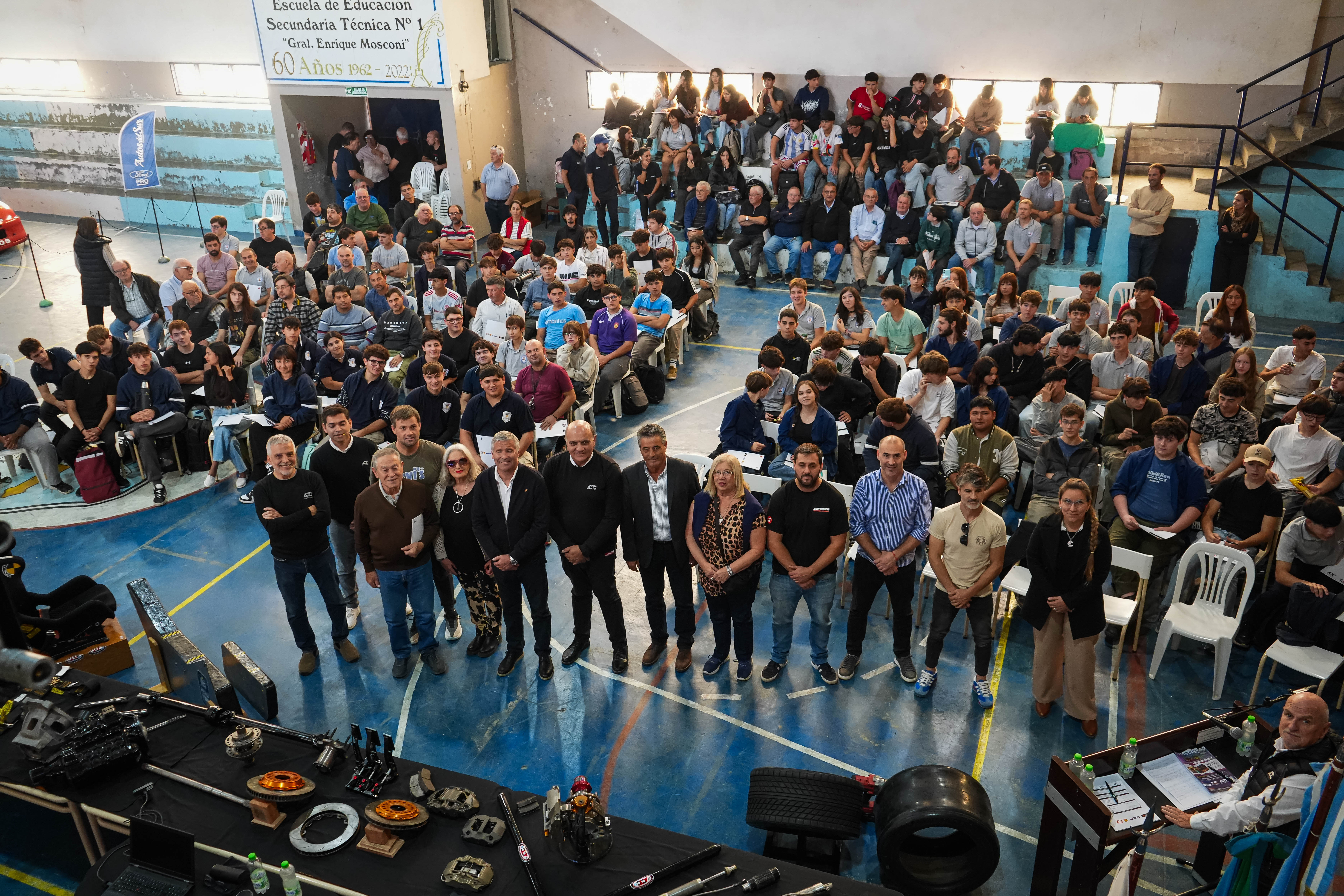 En el salón deportivo de la escuela se ubicaron los dos autos de competición: por un lado el Ford Falcon rojo de Néstor Appella, piloto de Lobos que supo ser parte de la Comisión Directiva de la ACTC, y a su lado, el Ford Mustang con el que competirá Cristian Beraldi en las próximas fechas del TC Pista. Asimismo, el personal de Auto del Sur también exhibió una camioneta Ford Ranger con la que el equipo de ACTC Educación traslada todo los elementos que se necesitan para llevar adelante ésta jornada.