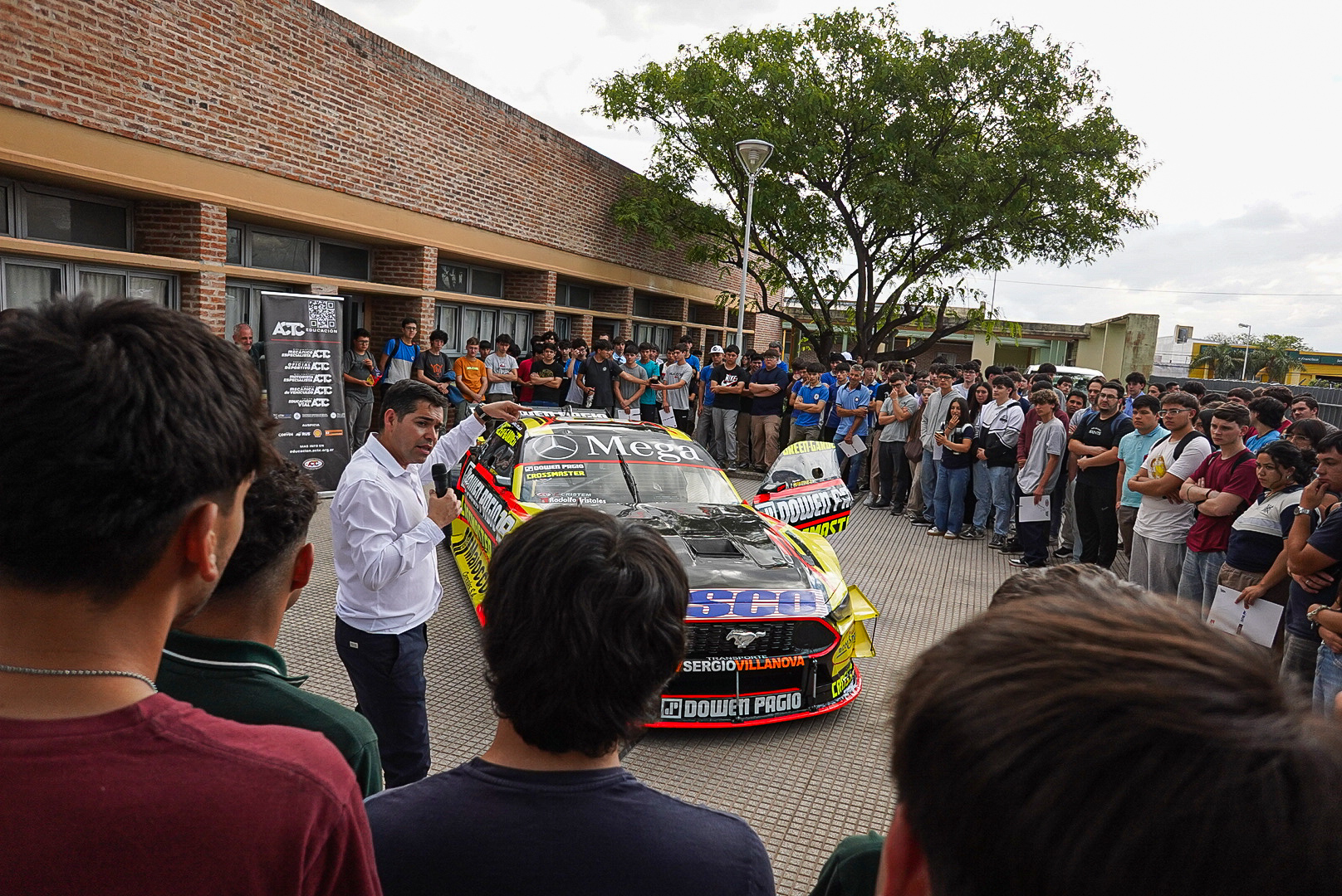 Luego, los estudiantes pudieron ver todos los detalles técnicos, mecánicos y aerodinámicos de un Turismo Carretera, porque en el patio de la escuela, estuvo a disposición el Ford Mustang de Agustín Martínez, piloto de TC, que también es oriundo de Paraná.