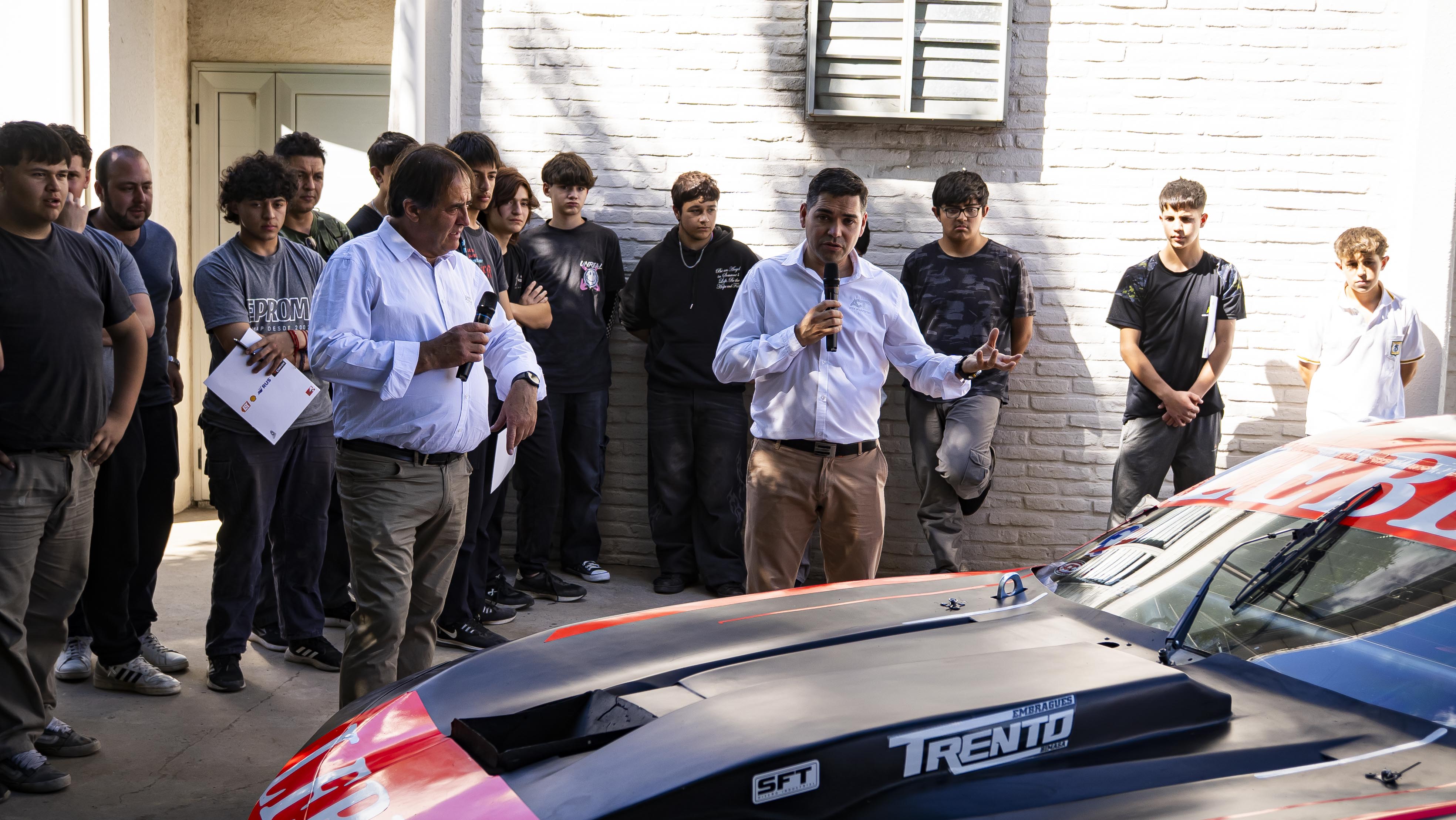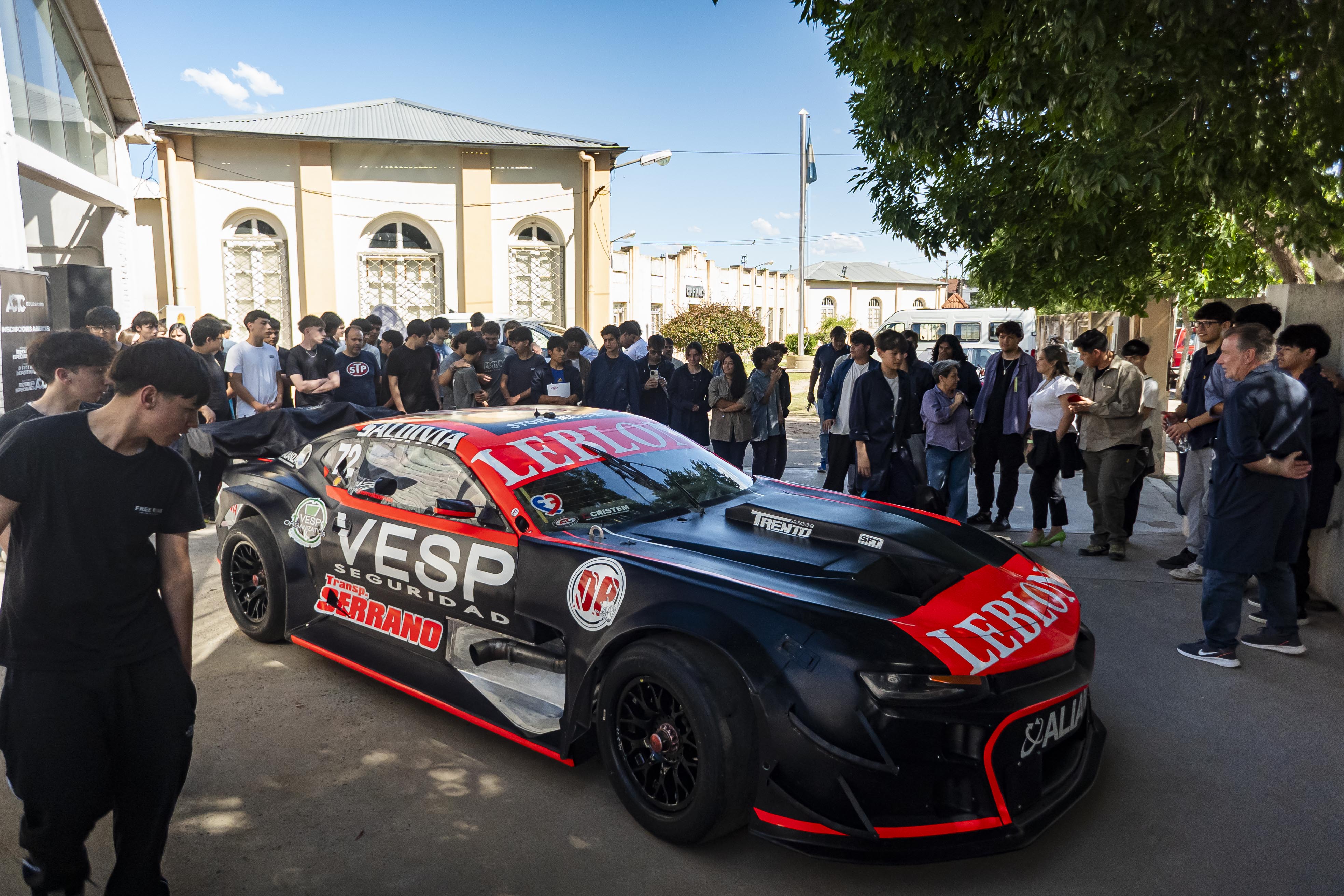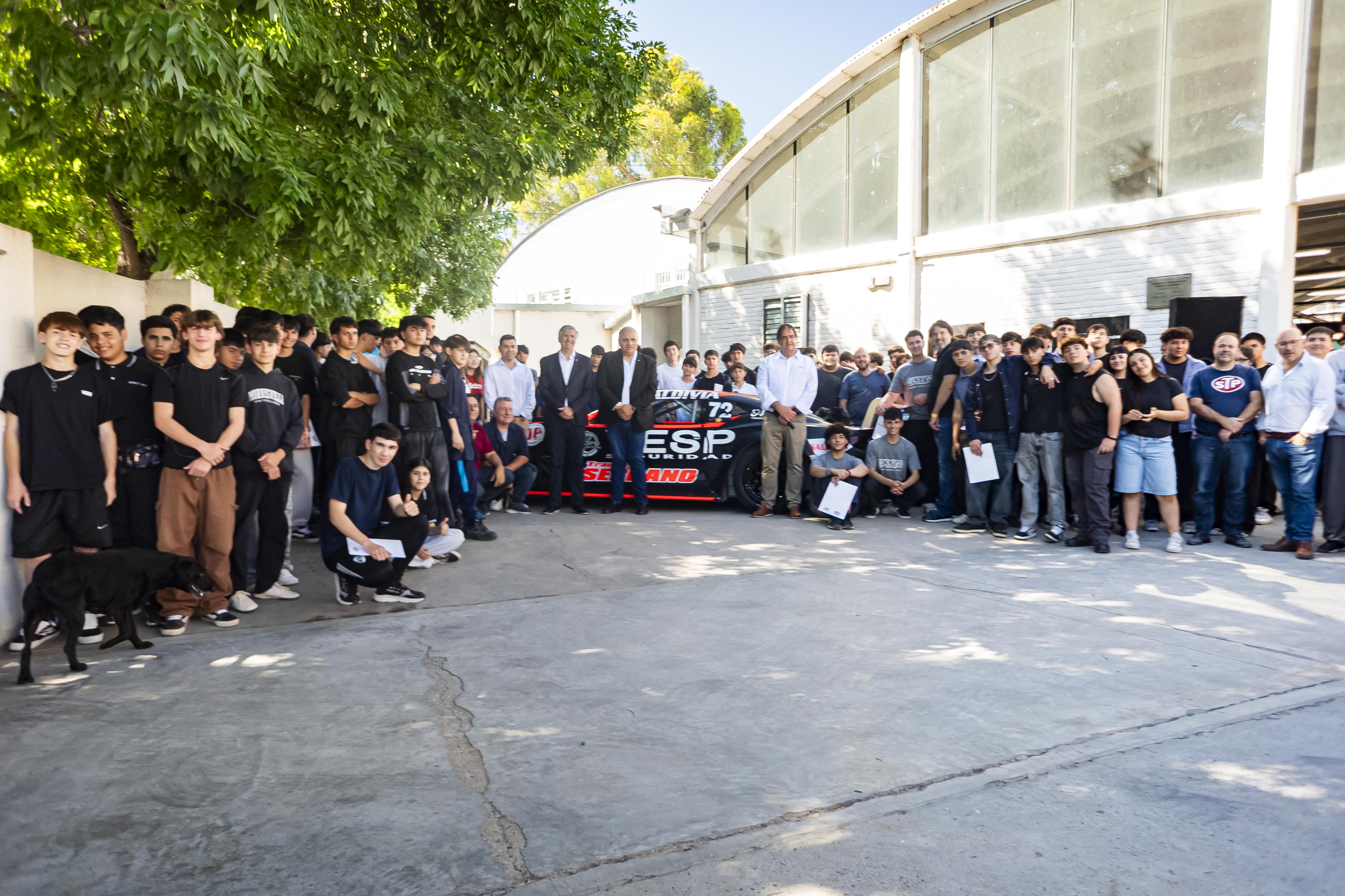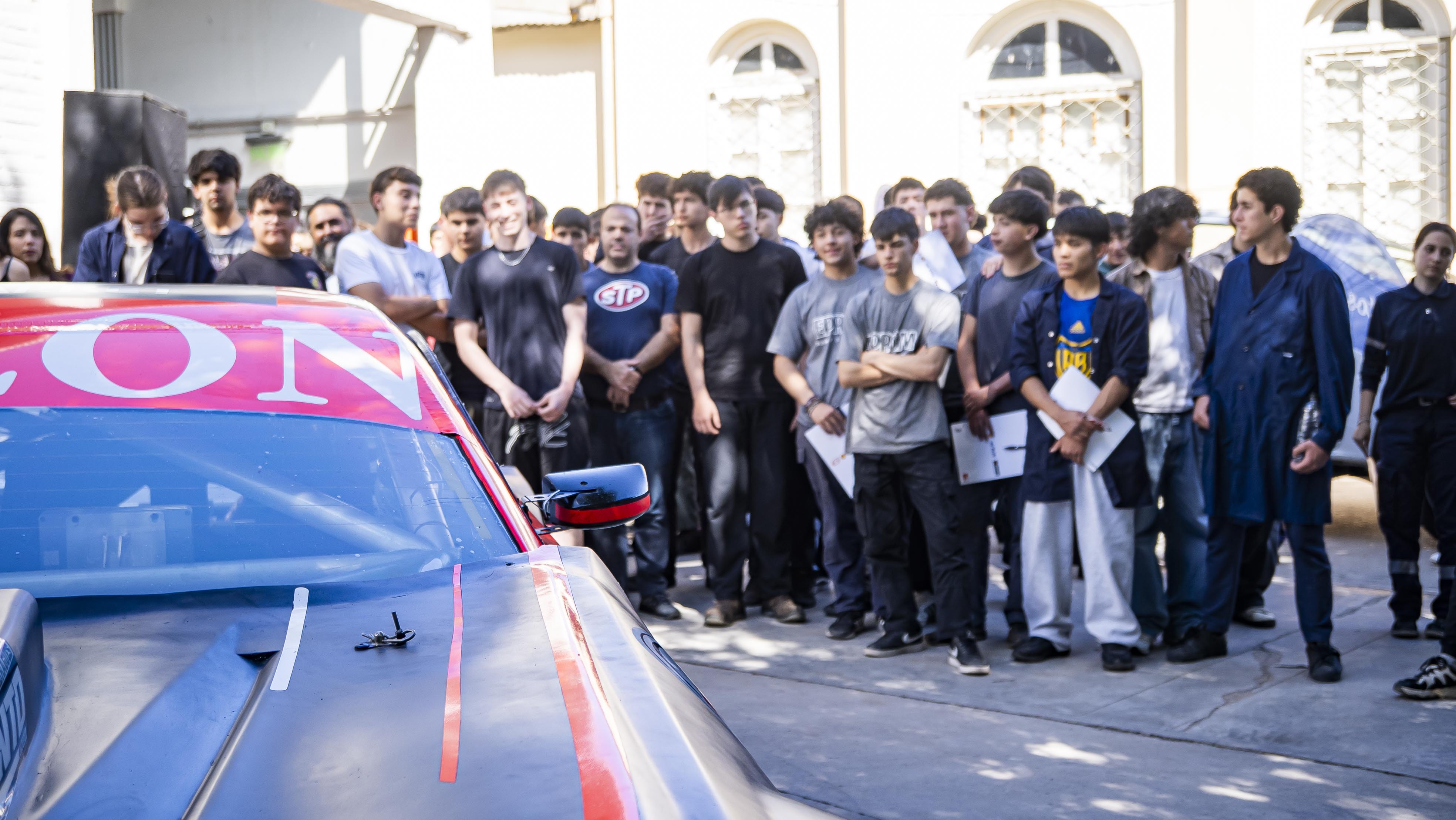 Los estudiantes pudieron ver todos los detalles técnicos, mecánicos y aerodinámicos de un Turismo Carretera, porque en el patio de la escuela, estuvo a disposición el Chevrolet Camaro de Martín Serrano, piloto de TC.