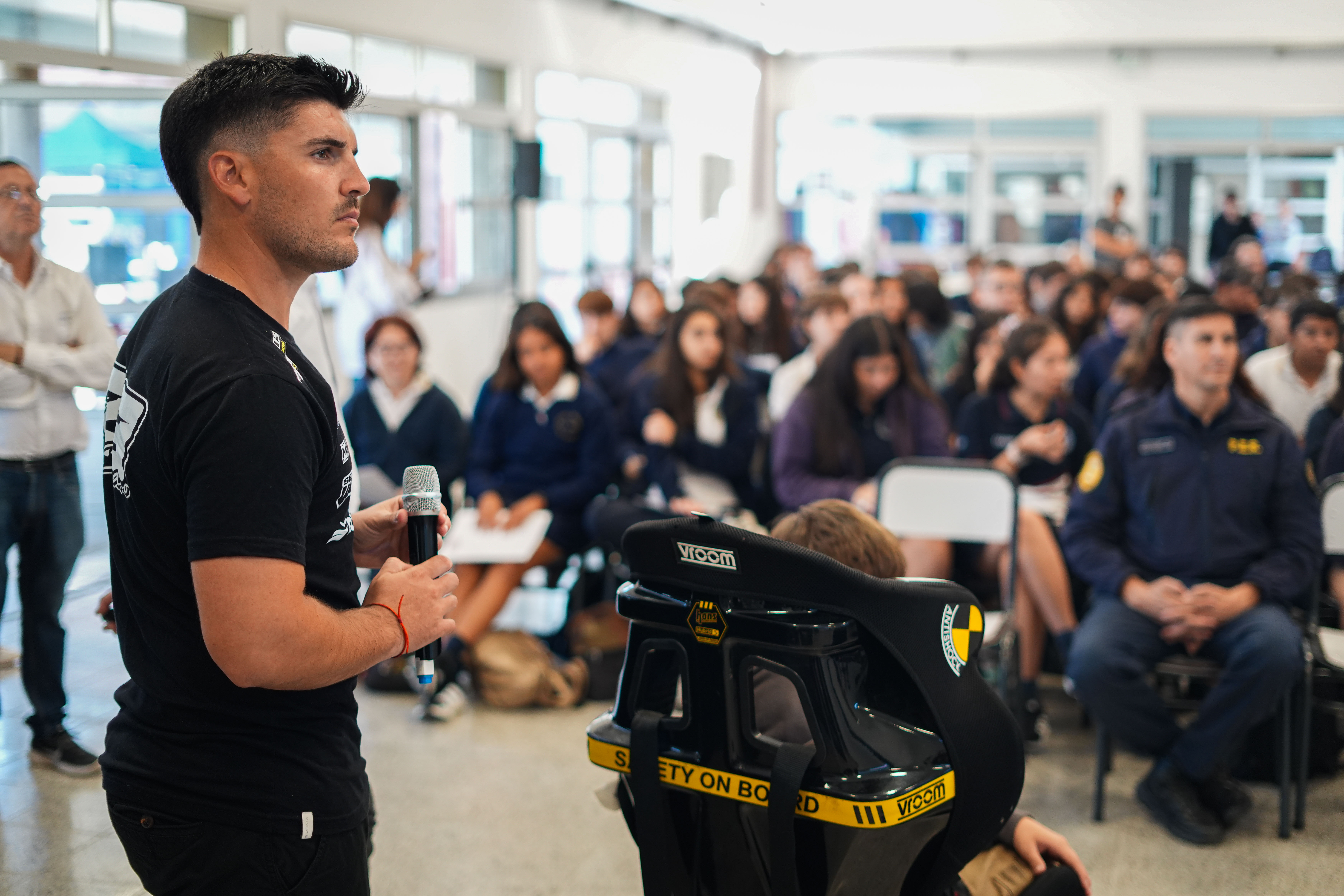 “Esto es muy positivo, espero que a los chicos les haya servido y que se lleven buena información. Fuimos mezclando un poco la cotidianidad, de manejar un auto de calle, con la vida arriba de un auto de carreras”, sostuvo el piloto de Chacabuco.