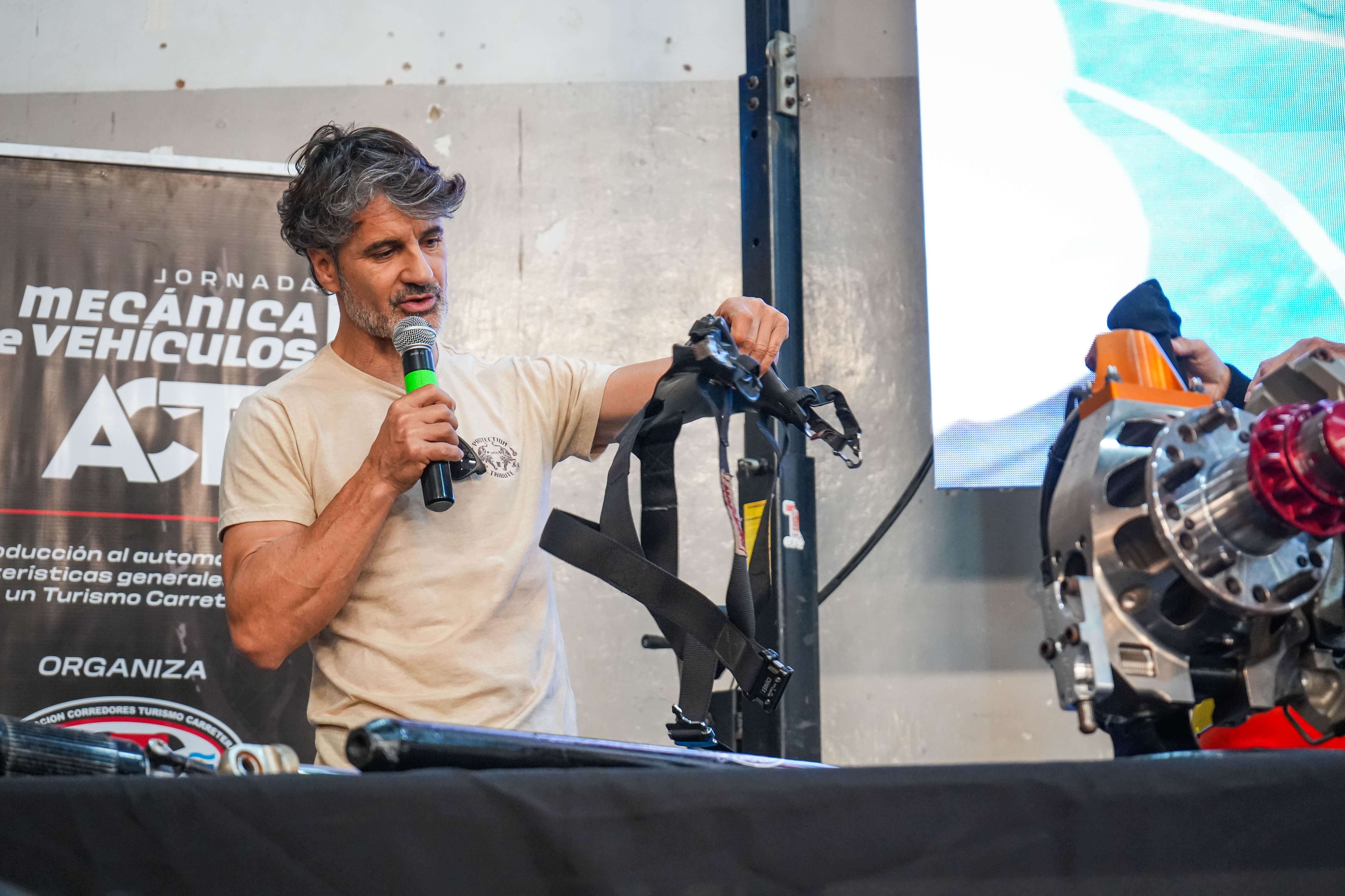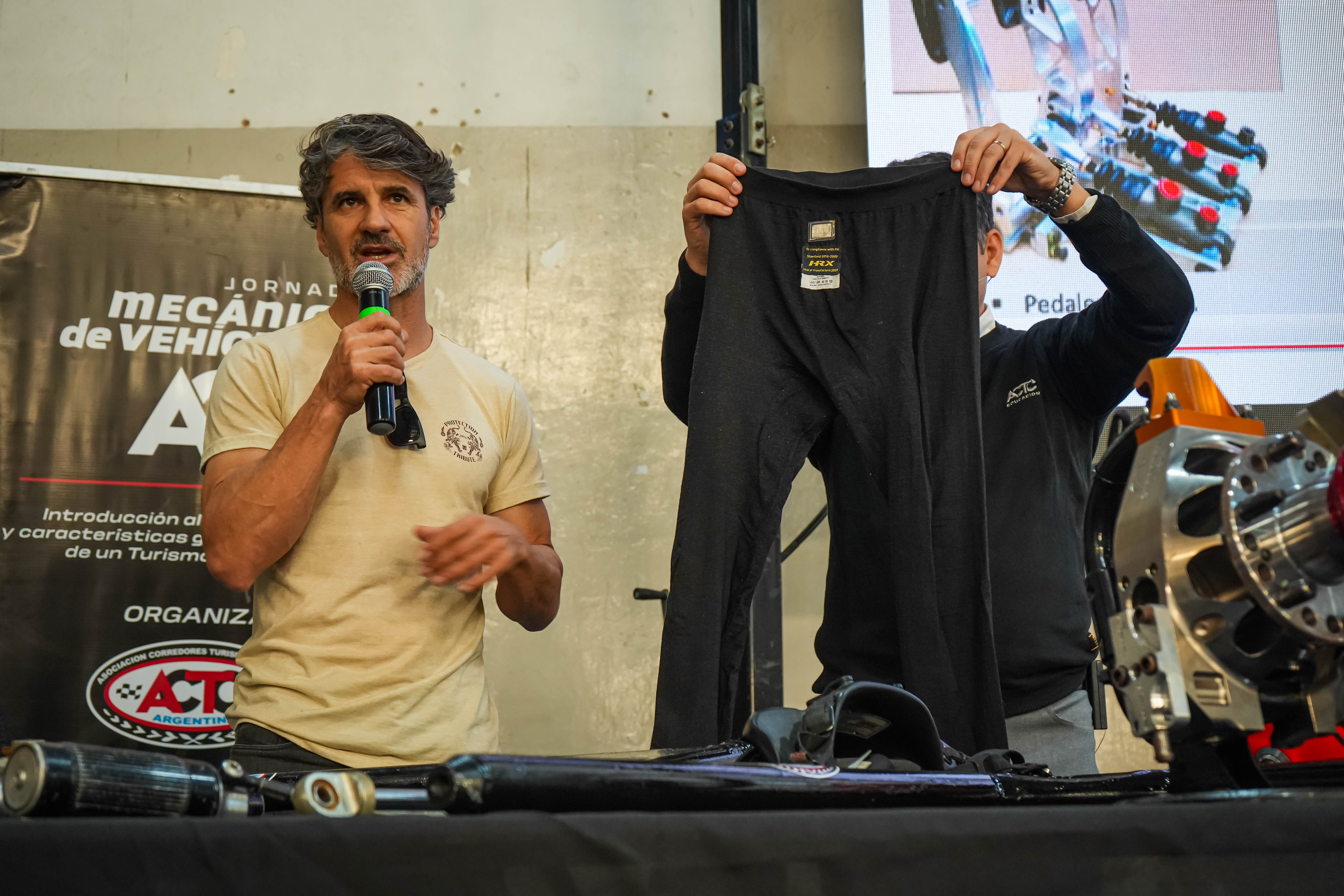 Emiliano Spataro, piloto de Turismo Carretera, participó, ayer, en la Jornada Mecánica de Vehículos que se realizó en la ciudad de Lobos. El oriundo de Lanús, que lució su indumentaria de competición, les contó a los más de 150 alumnos cómo son los cuidados arriba de un Turismo Carretera y qué importancia tiene la ropa ignífuga reglamentaria.