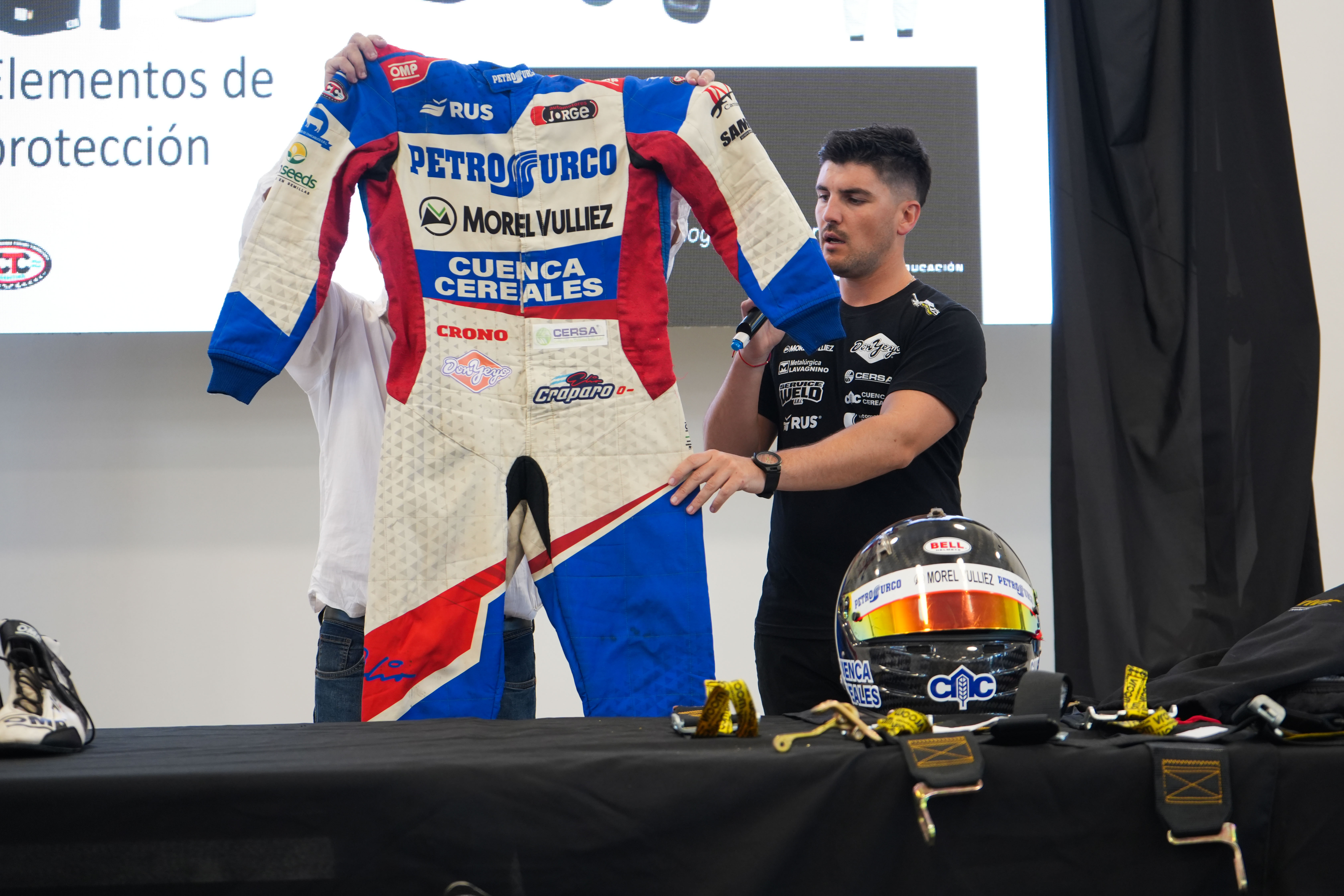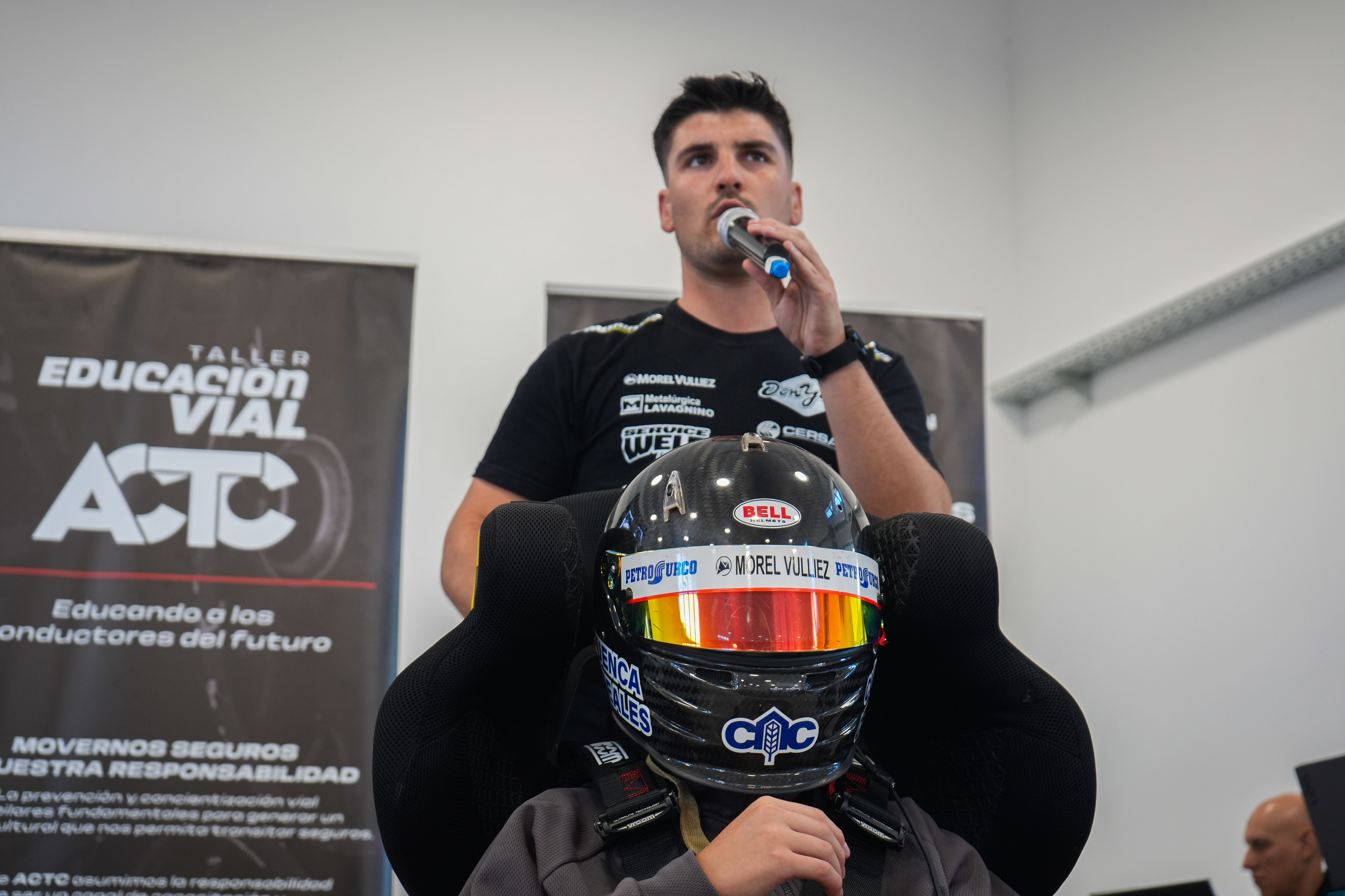 Luego, Claudio Alonso, en conjunto con Elio Craparo, contó cuáles son las similitudes y diferencias entre un auto de competición y uno de calle, las reglas de tránsito y el reglamento. Además, el piloto de Chacabuco, explicó las funciones de la indumentaria reglamentaria que se utiliza en el automovilismo.